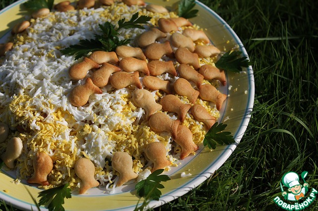 Рецепт «Закусочный рыбный торт-салат с крекерами»: