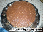 Разложите тесто равномерным слоем в смазанную маргарином форму. Должно получиться 2коржа. Выпекайте 15минут при 240 градусах.