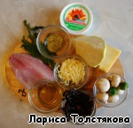 3. Грибы нарезать тонкими пластинками и уложить на филе в виде чешуек.
