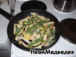 Сверху выкладываем дольки лимона, ломтики баклажана и стручковую зеленую фасоль. Тушим 15 мин.