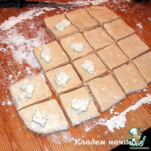 Кладем на серединки квадратиков начинку.