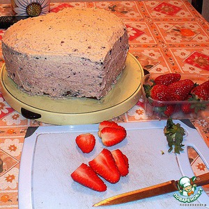 Режем клубнику (думала из нее вырезать формочками сердечки, но решила, что пошлость должна быть в меру)