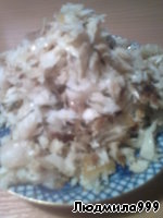 ПЕРВЫЙ ШАГ- пожарить рыбу, разобрать на волокна, выложить тонким слоем, промазать слой майонезом