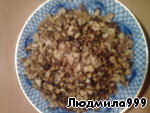 ЧЕТВЕРТЫЙ СЛОЙ - грецкие орехи измельчить и пожарить на сухой сковороде, посыпать на обжаренный лук.