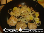 Посолить, поперчить, обжарить вместе с луком-пореем