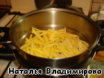 Картофель нарезать соломкой и отварить на пару 5-7 мин.