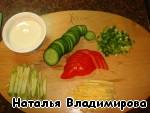 Все, кроме огурцов, нарезаем соломкой или дольками, огурцы кружочками, соединяем и прогреваем на водяной бане 10 минут. -