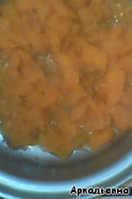 В маленьком сотейнике припустить мелко порезанную тыкву до готовности.