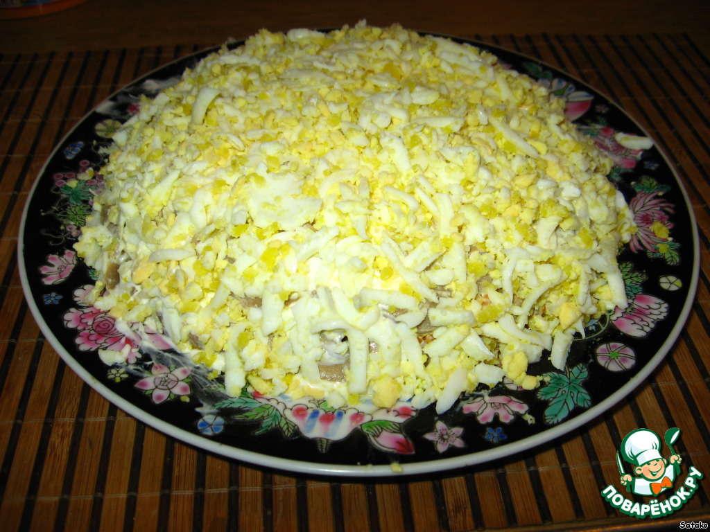 Четвёртый слой - шампиньоны, промазать майонезом.