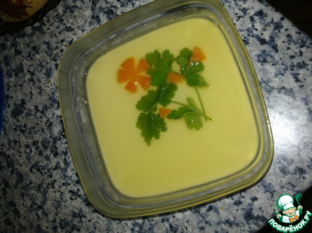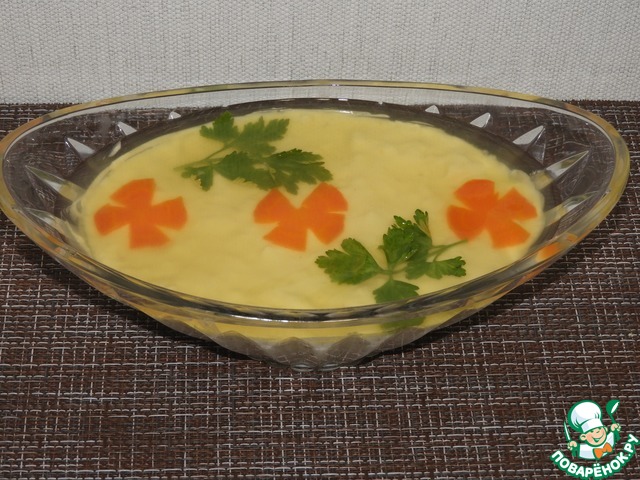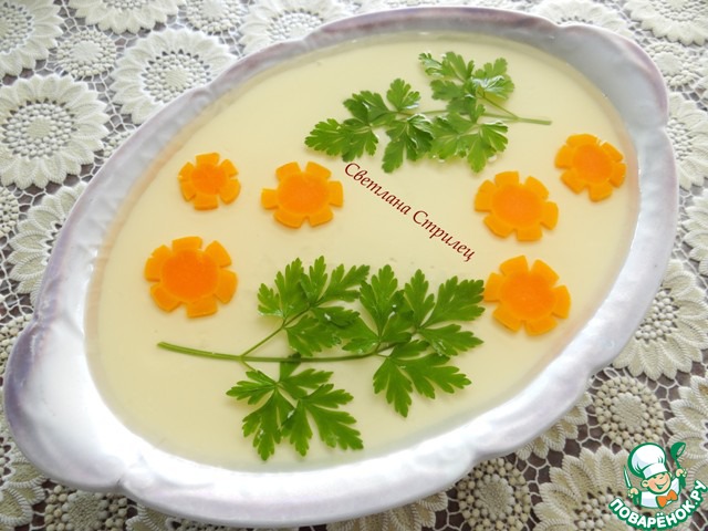 В отлитый прозрачный бульон добавить 20 г желатина.