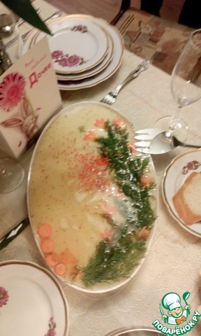 А под занавес расскажу вам смешную историю, которая была связана с этим блюдом. В молодости я ходила в "Клуб любителей фантастики" у нас в Архангельске. И вот с друзьями из этого клуба мы собрались отметить Новый год. Как сейчас сказали - устроить корпоратив. Событие назначили на 26 декабря на даче у одного из членов клуба. Стали распределять, кто что приготовит. Я вызвалась испечь торт и приготовить заливную рыбу. Рыбку украсила, как на последнем фото, петрушкой и розочками из моркови. И вот, вечером за мной на машине приезжают двое членов клуба, чтобы отвезти на дачу. Один из товарищей поднялся за мной в квартиру. Он взял торт, я большое блюдо с заливным. Спустились. Я села на заднее сиденье. Впереди сидел Владимир Николаевич Гецман, очень обеспеченный человек и председатель нашего клуба. Он с живейшим интересом обернулся назад, внимательно осмотрел блюдо и разочарованно так протянул: "Нууу... а обещали заливную рыбу..." Я говорю: "Так это она и есть". Он снова очень внимательно осмотрел блюдо и спрашивает строго так: "Ну, и где тут рыба?!!" А потом я готовила ему это блюдо на заказ на его юбилеи не один раз. А, надо сказать, что человек он был избалованный в плане кухни, объездил весь мир, много чего пробовал. А вот, подишь ты!!!
