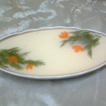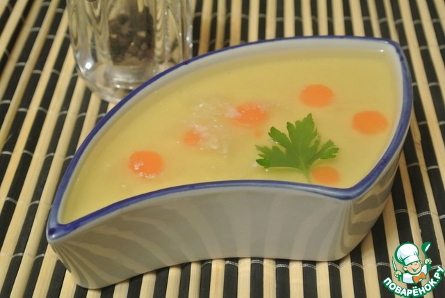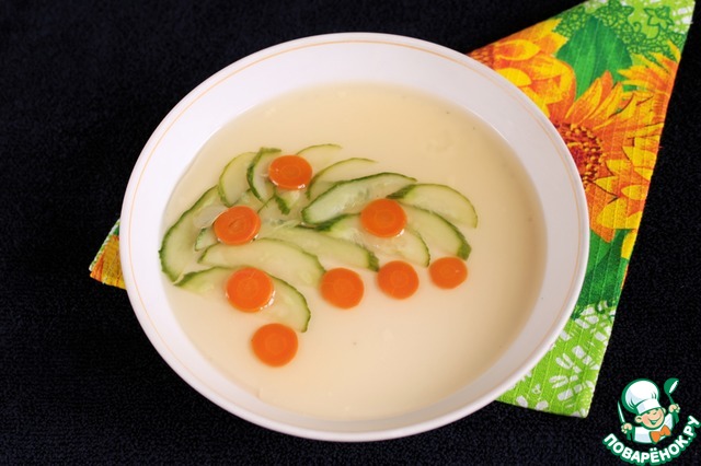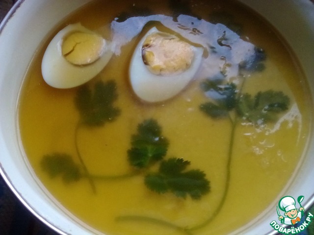 Бульон (он получится прозрачным) процедить через несколько слоев марли. Этого прозрачного бульона отлить в баночку приблизительно 400-450 мл.