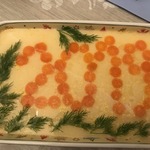 После того, как украшения хорошо пристынут, вынуть заливное и аккуратно залить его прозрачным желе. Снова отправить в холодильник для окончательно застывания.