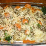 1. Почему картофель ВАРЁНЫЙ? Ведь Вы держите блюдо в духовке 30 мин, за это время и сырой испечётся. Раз его отваривете, то уже не получается "два в одном" (экономия времени).