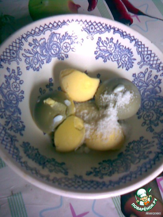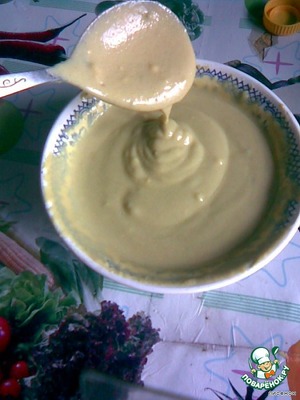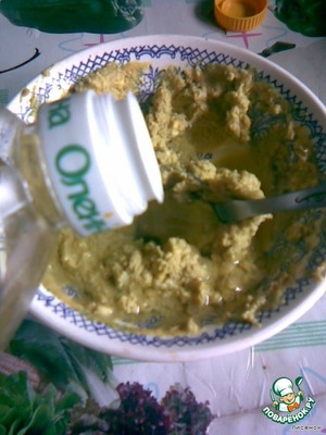 Готовим заправку: 3 желтка растираем с щепоткой соли,