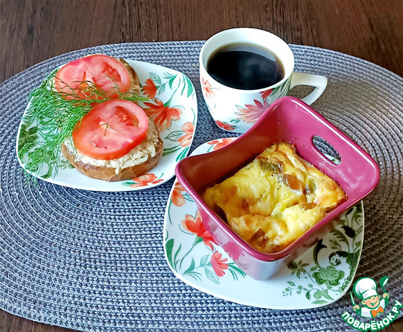 Готовила на завтрак, брынзу заменила на творог и тертый сыр.