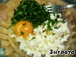 Брынзу нарезать или размять вилкой, добавить рубленную зелень петрушки, яйцо,