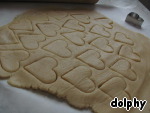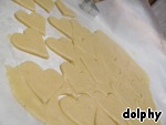 Раскатайте половину теста между двумя листами бумаги для выпечки в пласт толщиной 5 мм. Формочкой вырежьте печенье.