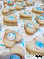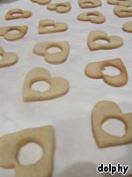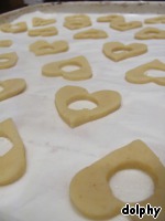 Перенесите печенье на противень и вырежьте кружочек в середине.