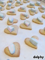 Когда целое (без окошка) печенье испечется, достаньте противень из духовки и на каждое печенье положите по кусочку маршмеллоу.