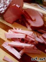 Копчёную говядину нарезать соломкой. Вот такая, однако, соломка у меня получилась :)