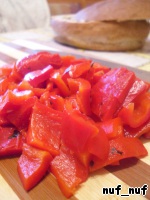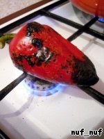 Перец я зверски обуглила на конфорке. Затем сунула в пакет и дала отлежаться 5 минут. Кожица снялась без проблем.