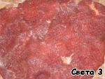 Нарезаем мясо на отбивные, укладываем в пакет, отбиваем с двух сторон. Отбитые куски мяса солим и перчим, откладываем в сторону и занимаемся начинкой.