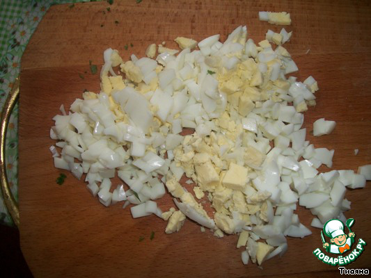 Добавить печень трески (размять вилкой), майонез. Перемешать.