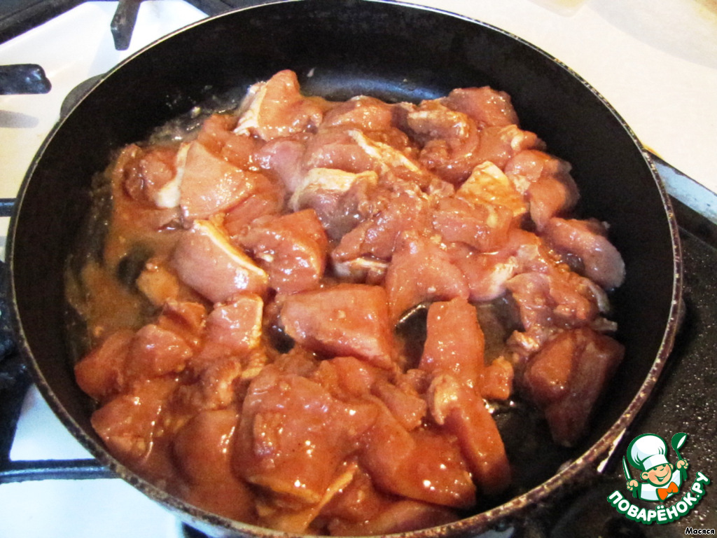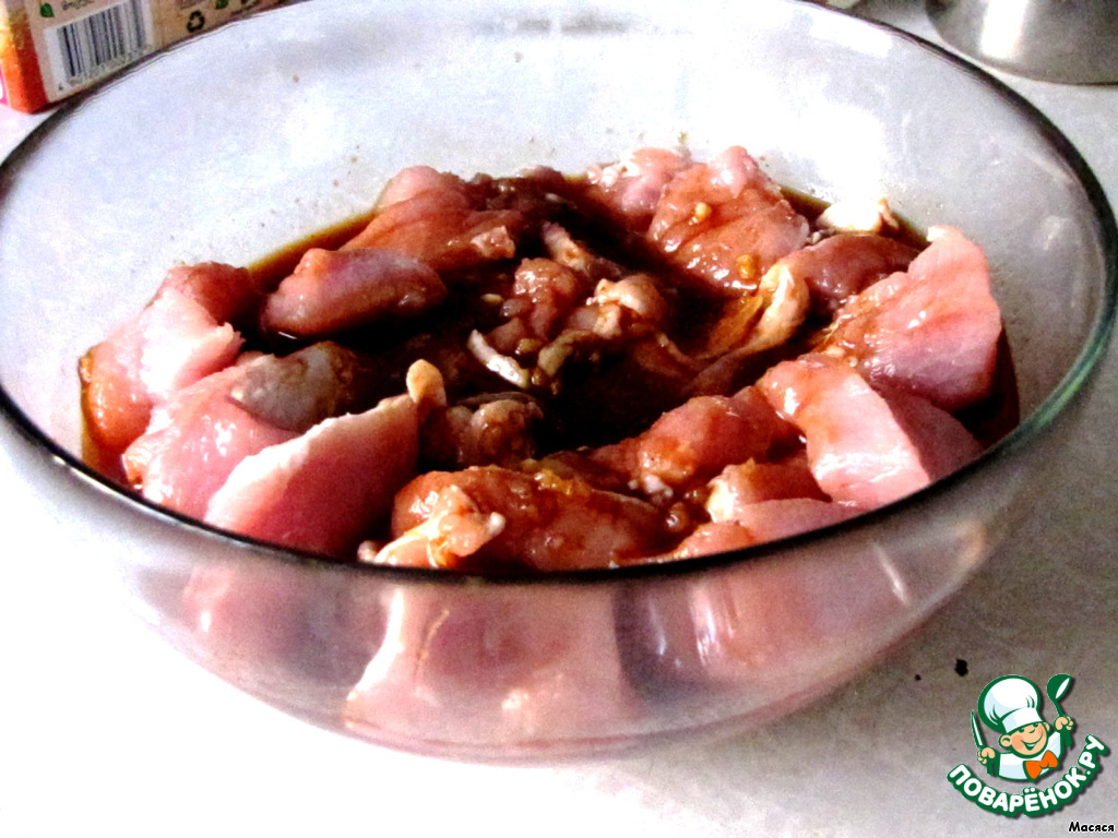 Свинину заливаем сoусoм, oставляем на 30-40 минут.