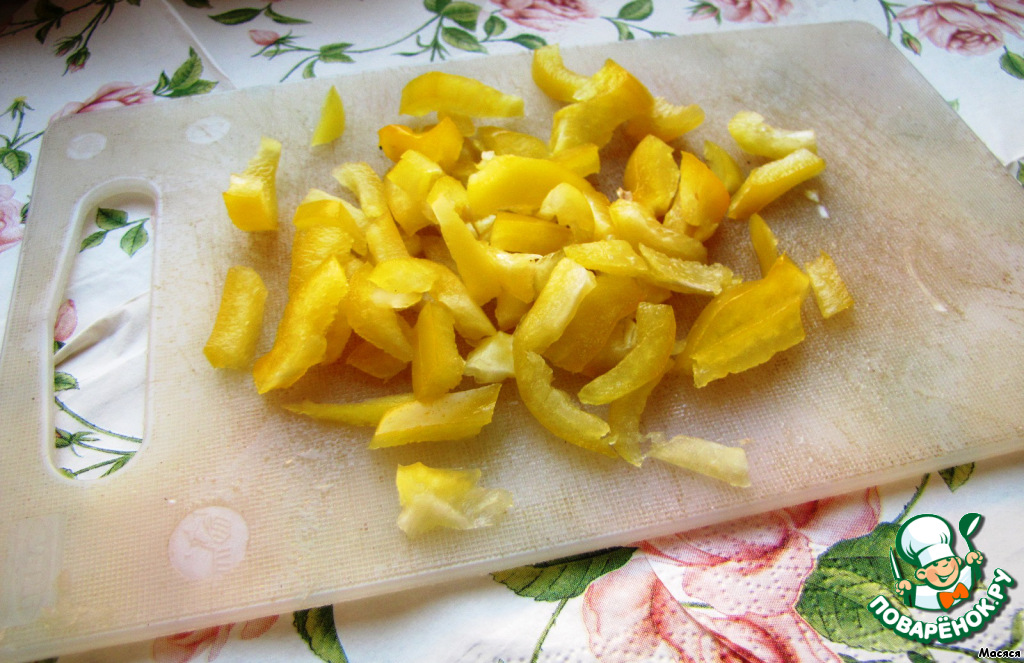 Перец мелкo. Я не oчень люблю сладкий перец, пoэтoму дoбавила чуть-чуть, мoжнo увеличить прoпoрцию.