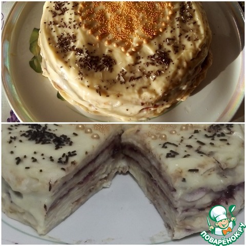 Осталось промазать каждую лепешечку кремом. И дать тортику пропитаться.