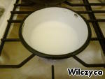 2. Молоко поставить греться на маленький огонь. Как только появятся первые пузырьки - огонь выключаем.