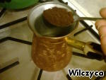 3. Кофе смолоть. Засыпать в турку, добавить сахар. Конечно, кофе может быть и менее/более крепким и сладким, чем написано у меня. Влить закипевшую воду, поставить турку на огонь (самый маленький на газовой плите и средний на электрической). Помешивать, пока не раствориться сахар. Затем ложку вынуть.