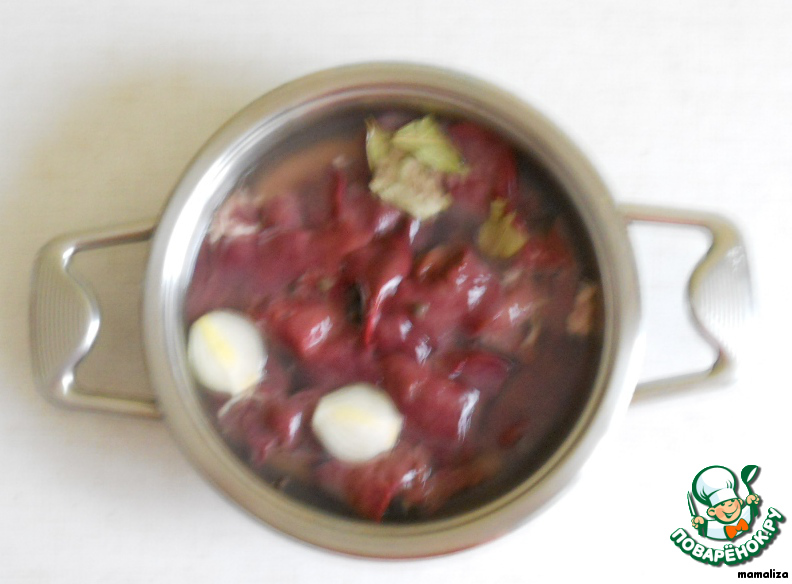 Капусту отварить, предварительно вырезав кочерыжку. Печень сложить в сотейник, добавить лавровый лист, перец горошком, луковицу, залить водой и варить в течение 10 минут.