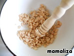 Отварную или консервированную фасоль слегка помять толкушкой.