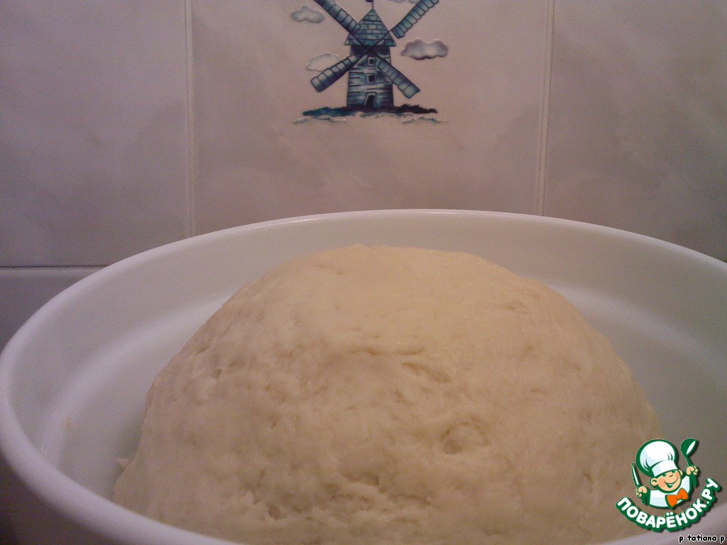 Замесить тесто из муки, сметаны, размягченного масла, 3-х желтков, соды, соли и ванилина.