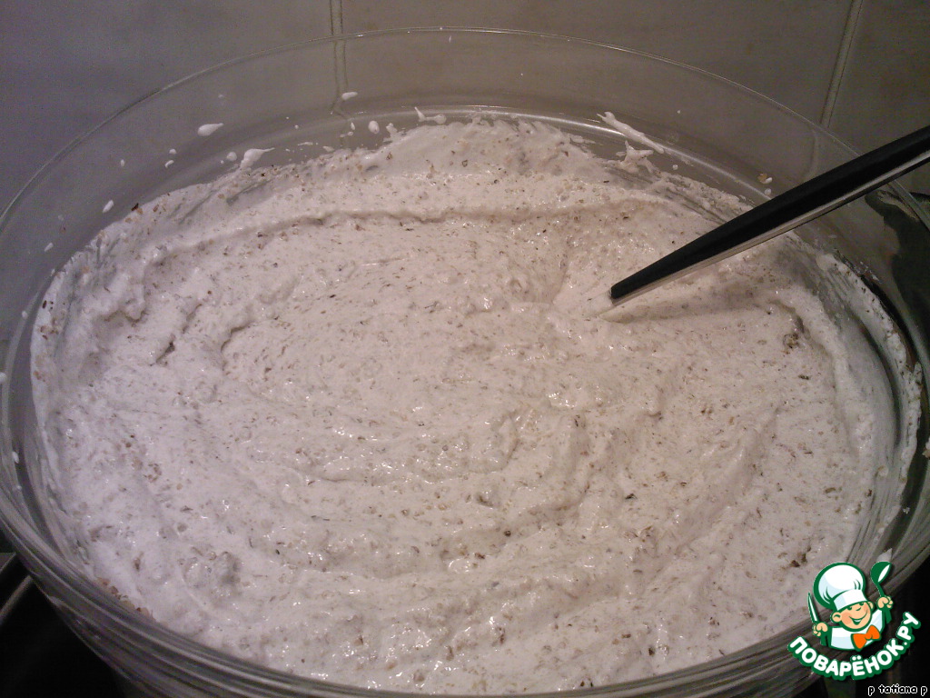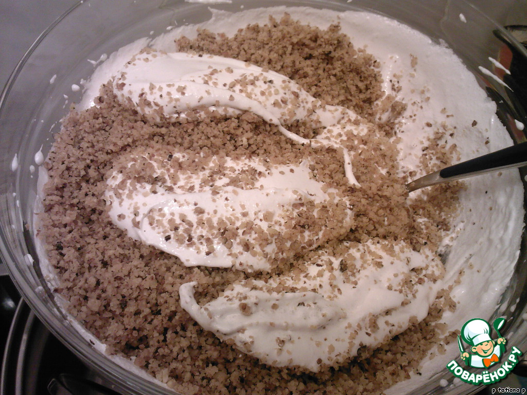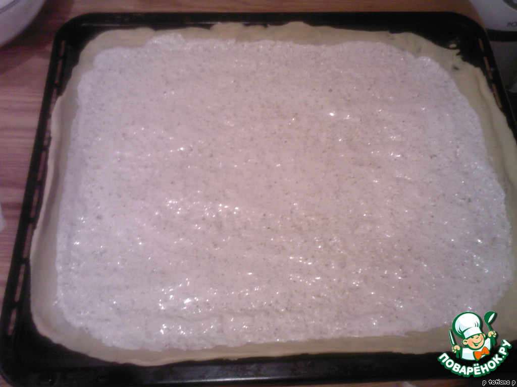 Начинка: 5 белков и 2 стакана сахара взбиваем в густую пену.