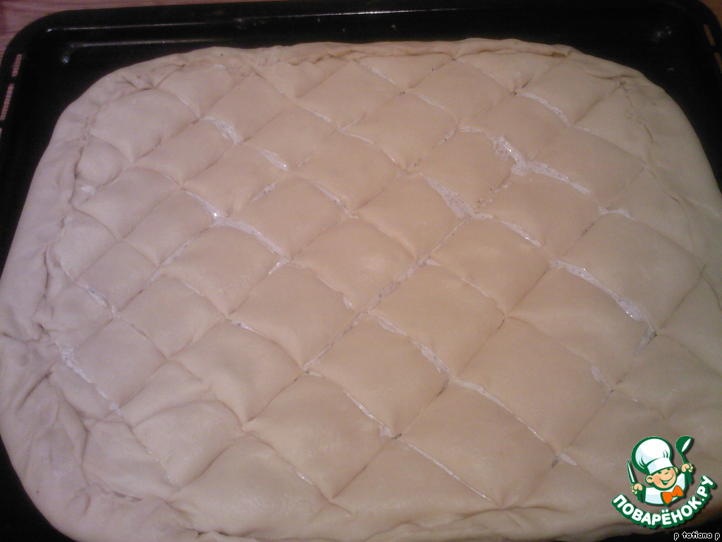 Верхний коржик промазываем яичным желтком. В желток можно добавить 2 ст.л. молока или воды.