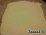 Включить духовку греться на 180 градусов. Достать тесто из холодильника. Раскатать его в квадратный пласт толщиной 0,5см.
