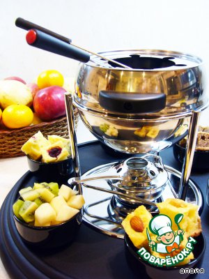 Рецепт "Шоколадное фондю с творожным бисквитом и фруктами":