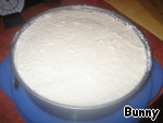 Положить второй корж и заполнить кокосовым кремом. Покрыть верхним коржом и выставить на холод на 2-3 часа.