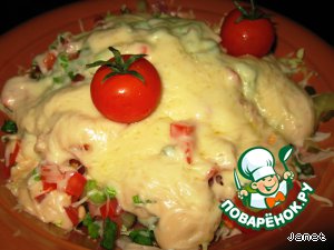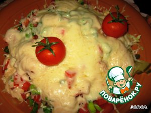 У меня второй вариант, первый вариант муж не приемлет.:)Бальзамический уксус можно заменить свежевыжатым лимонным соком (один кружочек лимона). -