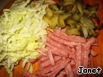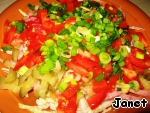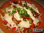 Ингредиенты смешать и заправить салат сверху, не перемешивая.