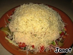 Сверху натереть на самой мелкой тёрке сыр. И запечь в микроволновке на самой большой мощности пару минут, сыр расплавится - блюдо готово!