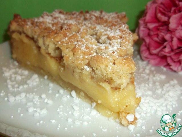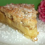 Пирог с выраженным лимонным вкусом, увенчан хрустящей присыпкой с миндалeм. Посередине мягкий лимонный крем. Великолепно освежающий десерт, употреблять с кофе. ))