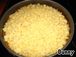 Ингредиенты для присыпки смешать и раскрошить. Тарт вытащить из духовки и распределить сверху миндальную крошку.