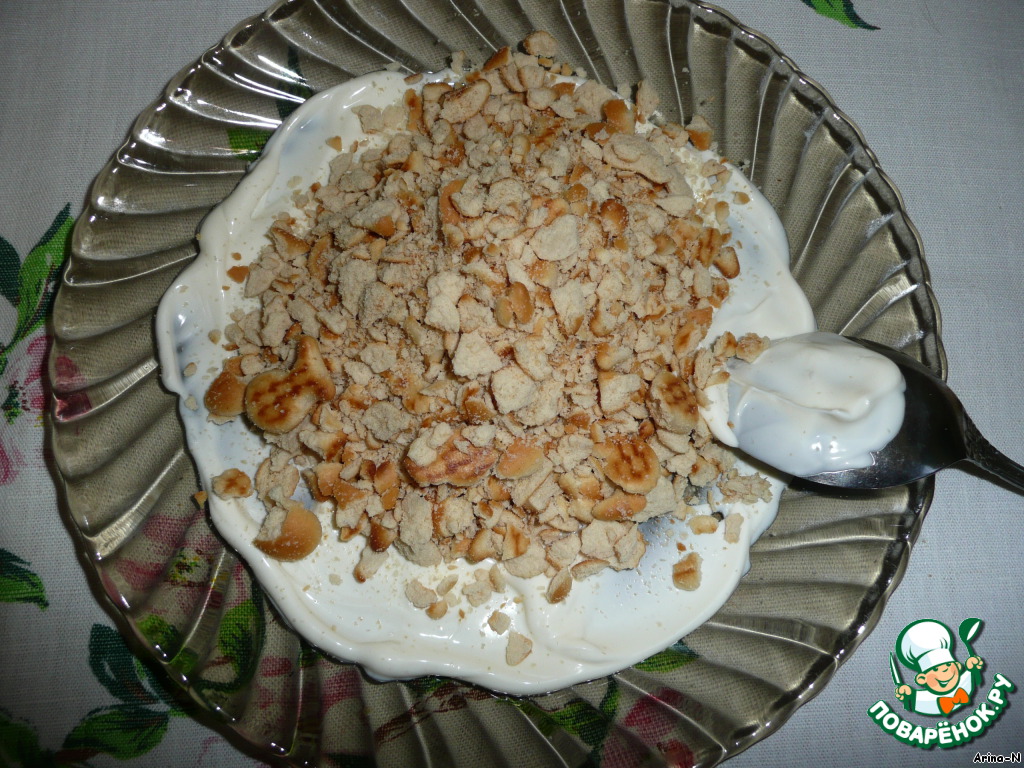 Отложите горсть крекера для украшения салата, остальной разомните скалкой в крошку.