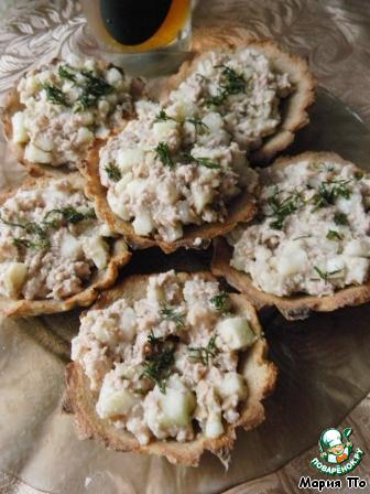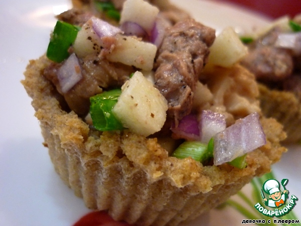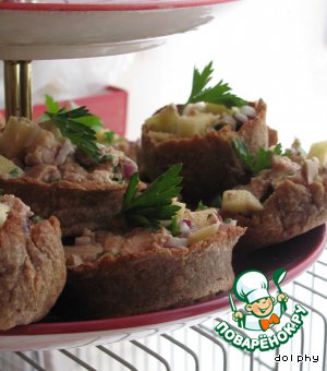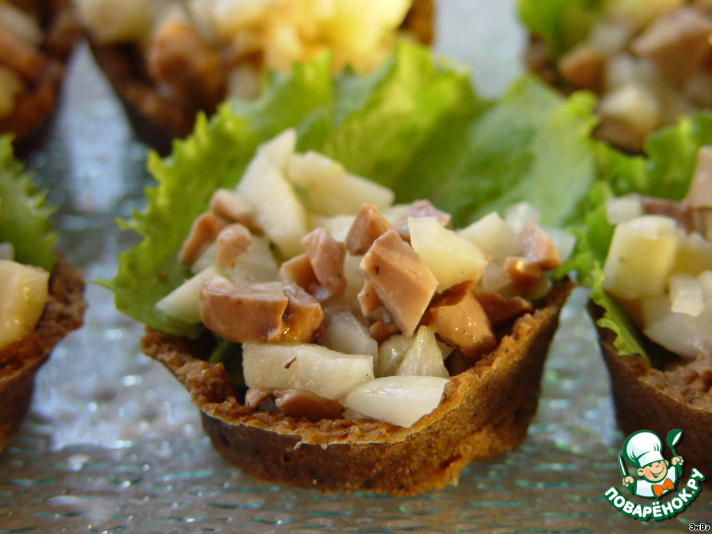 Рецепт «Корзиночки из черного хлеба с печенью трески»: