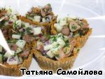 Танюш, ОЧЕНЬ вкусно!! Салатик мне понравился особенно! С корзинками немного тяжелее... Не смогла равномерно тесто распределить! Но все равно получилось ЗДОРОВО!!!!