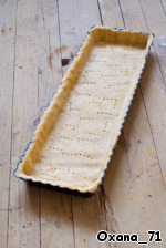 По истечении времени раскатать тесто не очень тонко. Выложить его в приготовленную форму с низким бортиком. Проколоть вилкой в нескольких местах и выпекать в заранее разогретой духовке при темп.180°Ц примерно 12-15 минут.